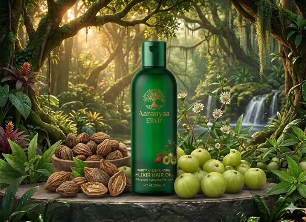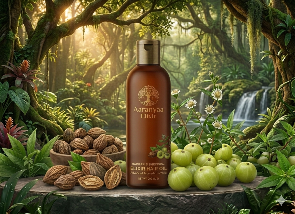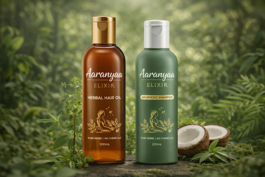 Aaranyaa Elixir Hair Oil offers a natural, Ayurvedic solution to effectively reduce hair fall and fight dandruff at the root.
